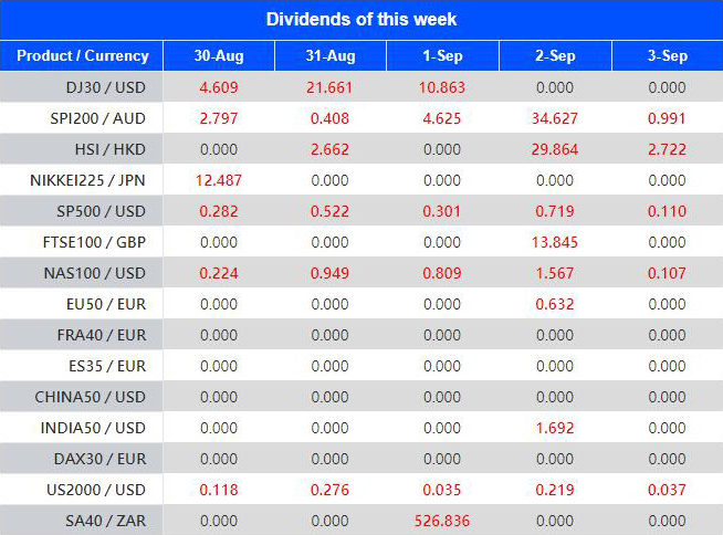 Warmly reminds you that the component stocks in the stock index spot generate dividends. When dividends are distributed, VT Markets will make dividends and deductions for the clients who hold the trading products after the close of the day before the ex-dividend date.