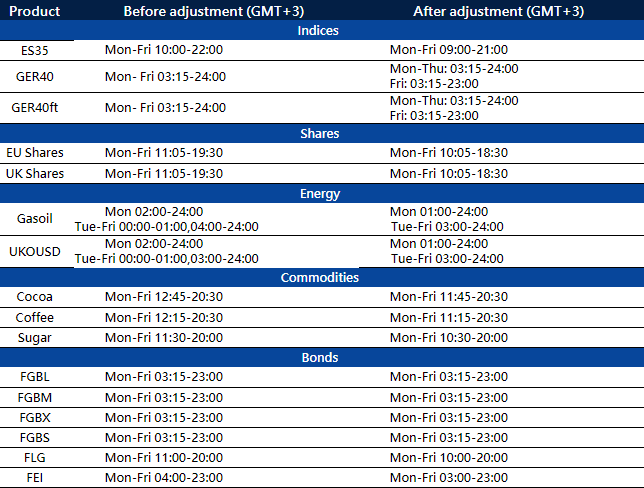 Starting from March 31, 2024, the trading hours of some MT4/MT5 products will change due to the upcoming Daylight Saving Time change in the EU/UK.