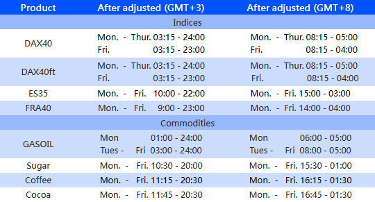 Dear Client, The trading hours of some MT4/MT5 products will change due to the upcoming Daylight-Saving Time change in US. …