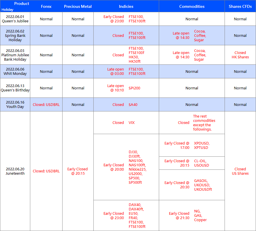 The above time is MT4/5 server time. The trading time of other products is not affected. The above data may be subject to change. Please refer to the actual time on MT4/5.