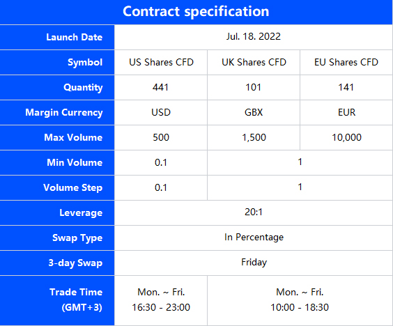 1. The new Shares are only available for trading on MT5.