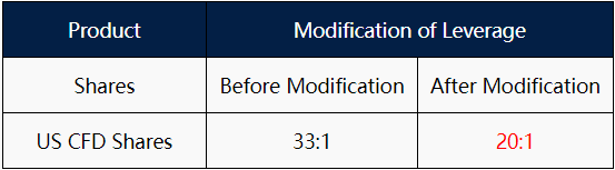 Due to high market volatility, VT Markets will adjust the leverage of US CFD Shares starting 16 January 2023: