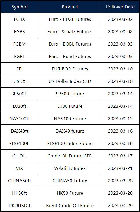 March Futures Rollover Announcement