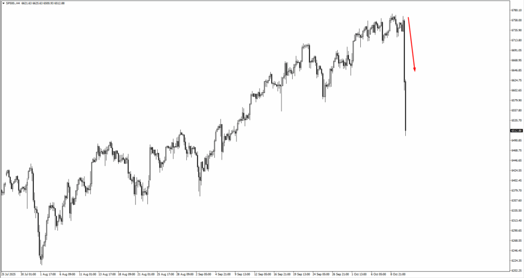 - 指数は監視されている抵抗線6,750から崩壊し、リスク回避の流れが強くなり、6,510に向けて急落した。