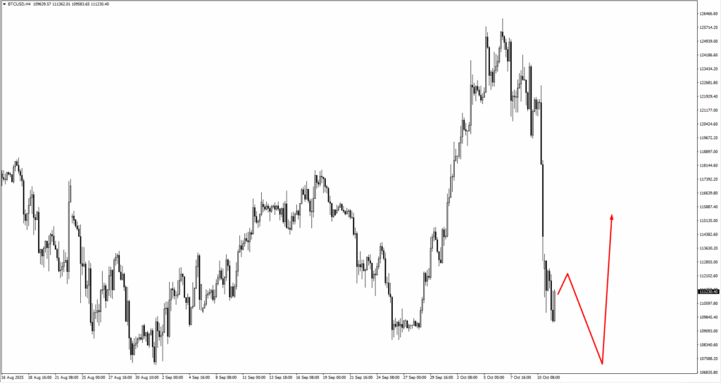 - ビットコインは122,700から急落し、109,600付近の安値に達した後、111,200付近で安定した。