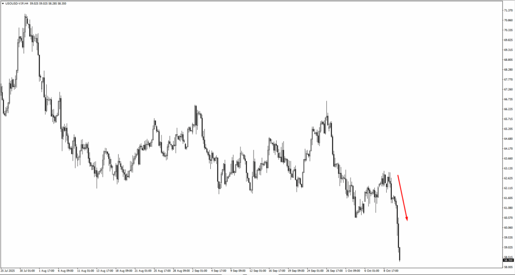 - 原油は下落を続け、監視レベルの60.55を下回り、現在はサポートレベル58.35をテストしている。