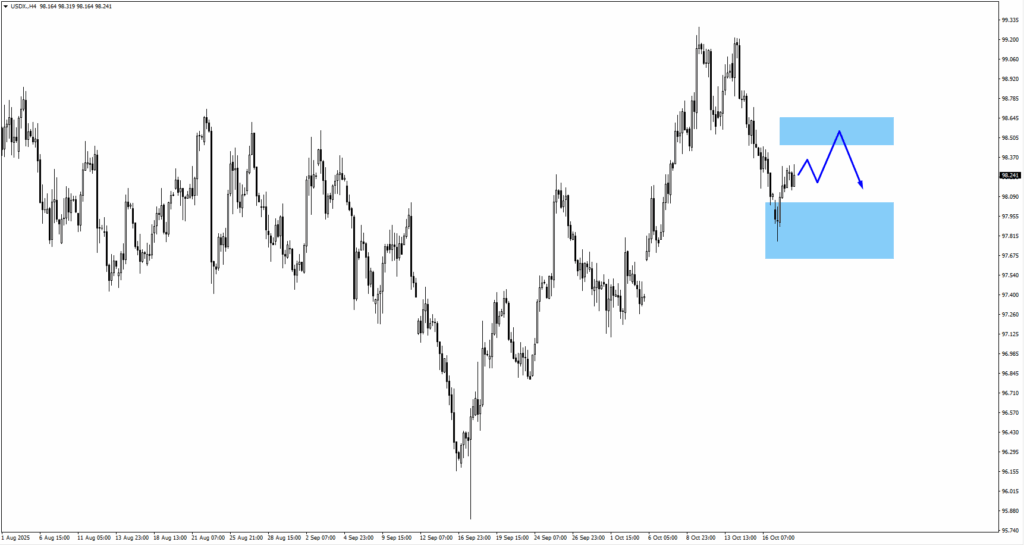 - USDXは97.85のサポートから反発し、現在は98.45付近で推移しています。