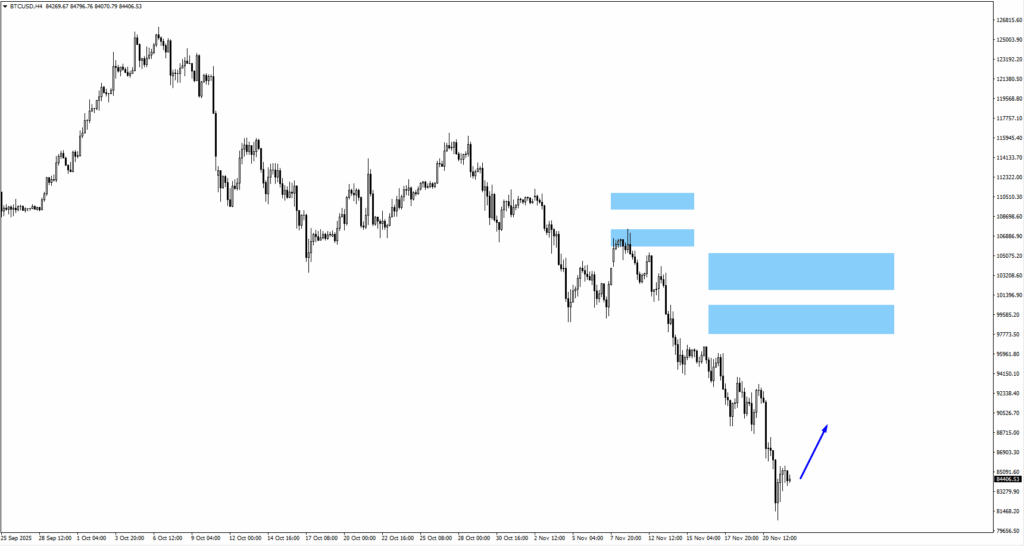 利回り低下は株式市場を押し上げ、ドル相場を圧迫した。2年国債利回りは3.5%に向けて低下する一方、AI関連銘柄とテクノロジー関連銘柄が上昇を牽引した。ビットコインとイーサリアムの売り圧力は弱まり、利回り低下と12月の利下げ期待の高まりを背景に、緩やかな「リスクオン」の動きが広がっている。
