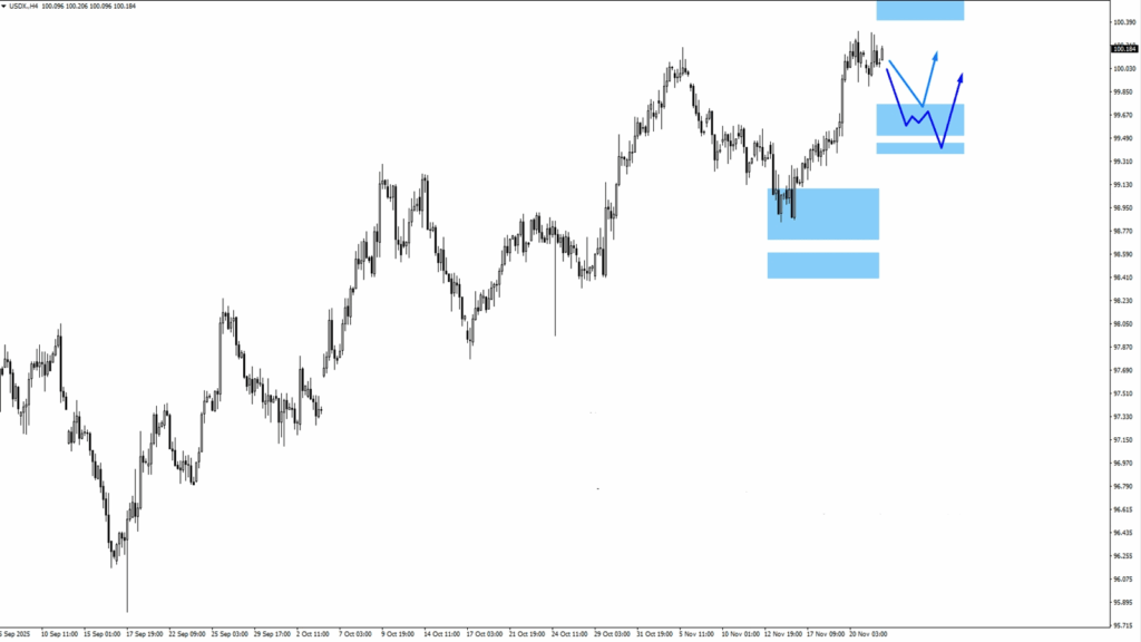 •  USDXはピークから下落し、サポートとして99.65ゾーンをテストしました。