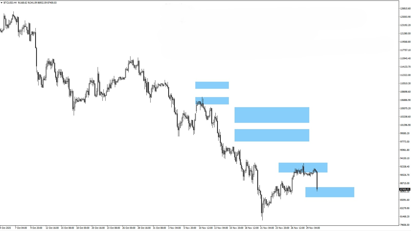 - BTC が現在の水準で再び統合パターンを示した場合、特に米国のデータがより強力になり、12 月の利下げ期待が損なわれた場合には、新たな安値への道が開かれる可能性があります。